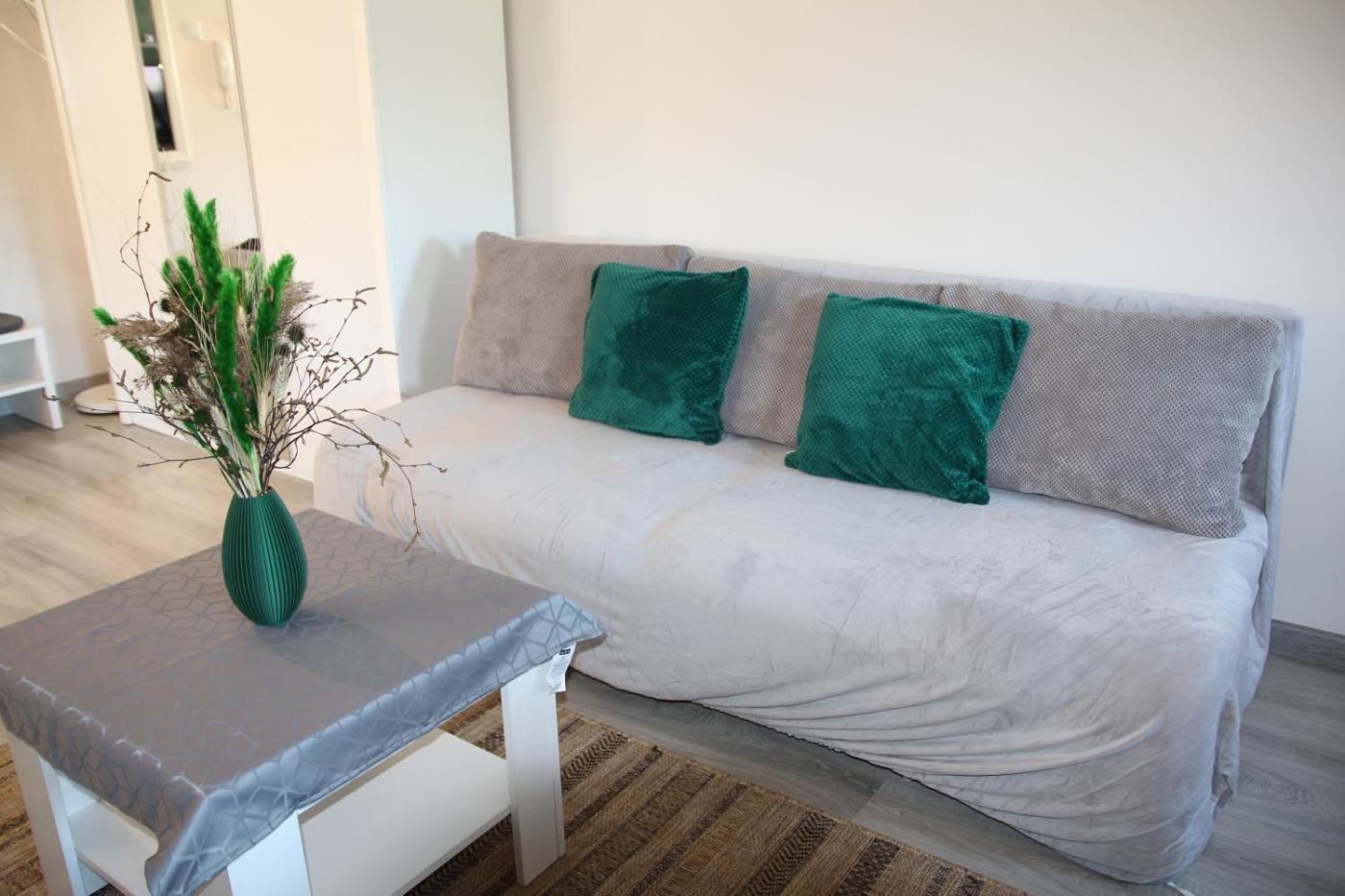 Apartament z 1 sypialnią. This apartment includes 1 living room, 1 separate bedroom and 1 bathroom with a shower and a hairdryer. Guests can make meals in the kitchen that is fitted with a stovetop, a refrigerator, kitchenware and an oven. The apartment has tiled floors, a seating area with a flat-screen TV, a washing machine, a tea and coffee maker, as well as a dining area. The unit has 2 beds. Apartament - 4 osobowy. Powierzchnia pokoju ok.: 32 mkw.